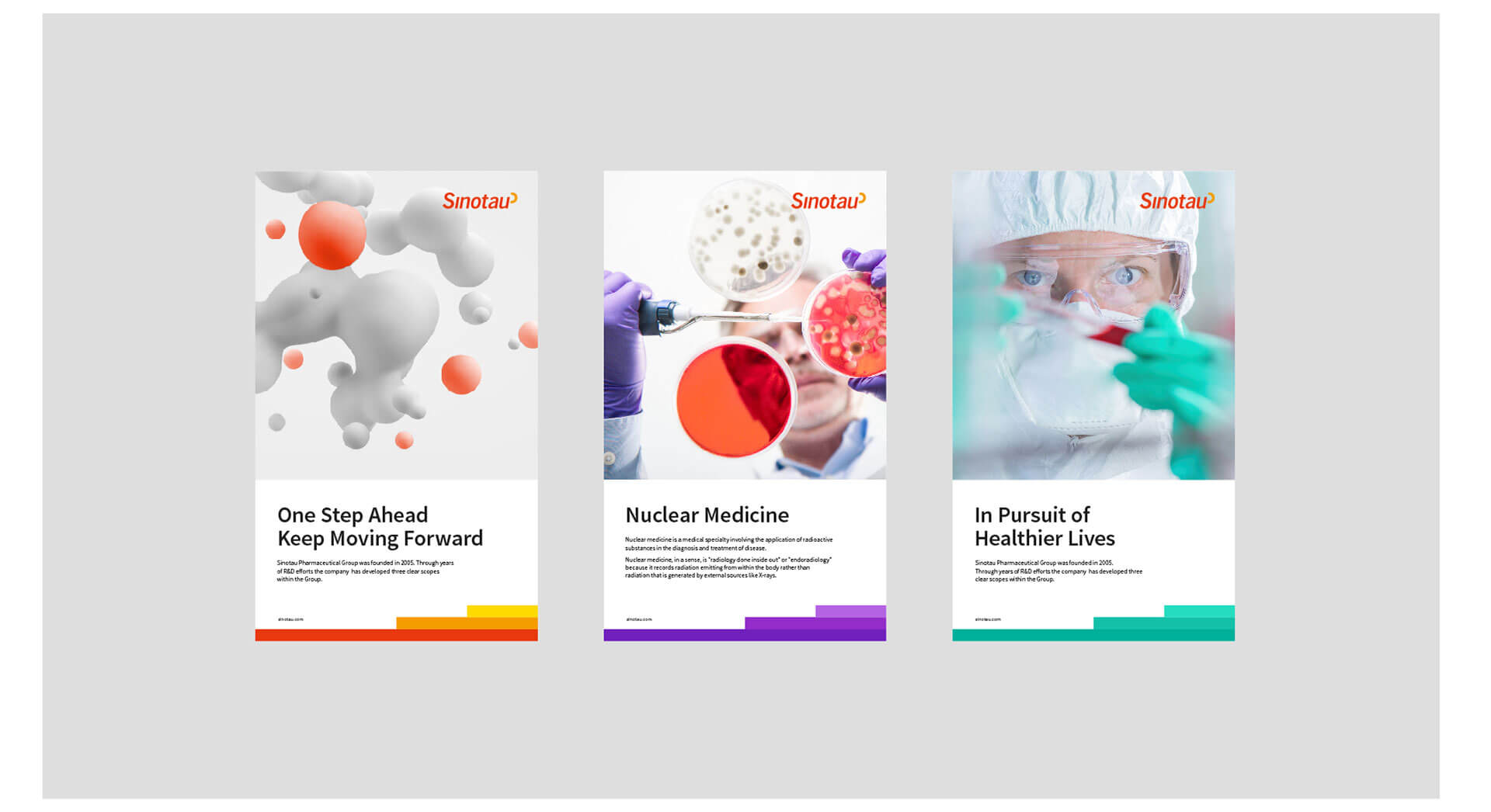 我们将品牌标准色从原本的蓝色,转变为明亮温暖的红色与黄色,表达出先通药业从研发科技到关怀生命的转型方向,使品牌感受更具亲和力。应用系统辅以紫色和蓝绿色,保留其创新和科技属性。